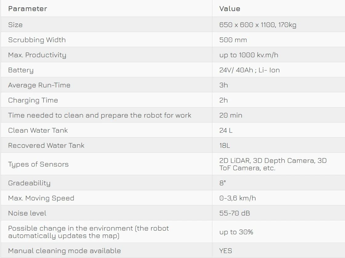 Scrubber 50 is an AI-powered autonomous floor scrubbing robot that goes beyond the scope of“automation”. Deep-learning algorithms are integrated within a sensor fusion of 2D LiDAR, 3D and RGB cameras, which grant the robot high-accuracy environmental perception and the ability to make advanced operation decisions according to the real-time situation.