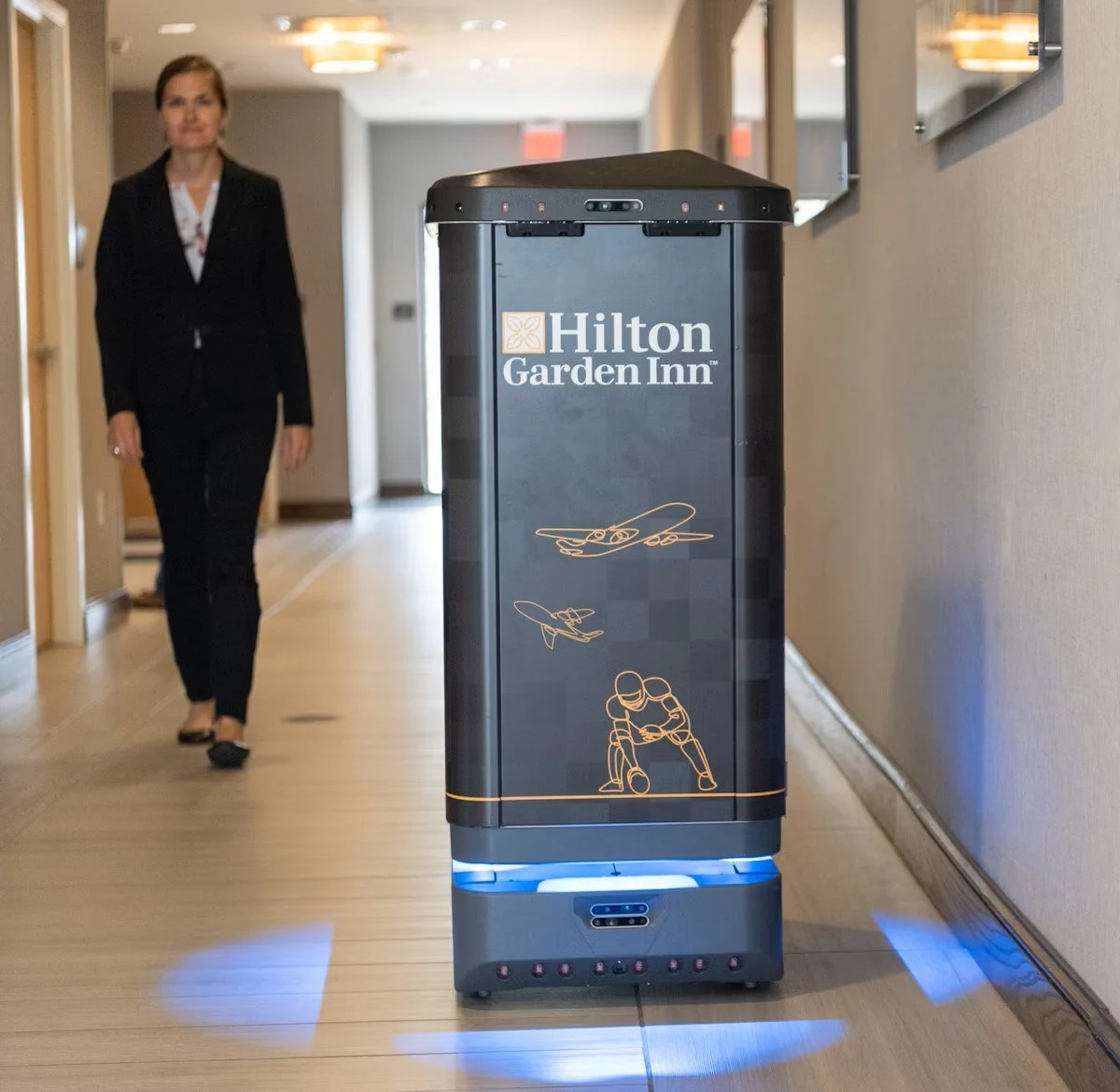 Although a quiet colleague, delivery robots carry a heavy load. From transporting food and beverages as part of the Room Service team to taking dirty laundry to the washing machine to assist Housekeeping. Robots can take orders from guests and take the trash out to the curb. They can also deliver supplies to teachers, snacks to classrooms, and packages to residents. The possibilities are endless!